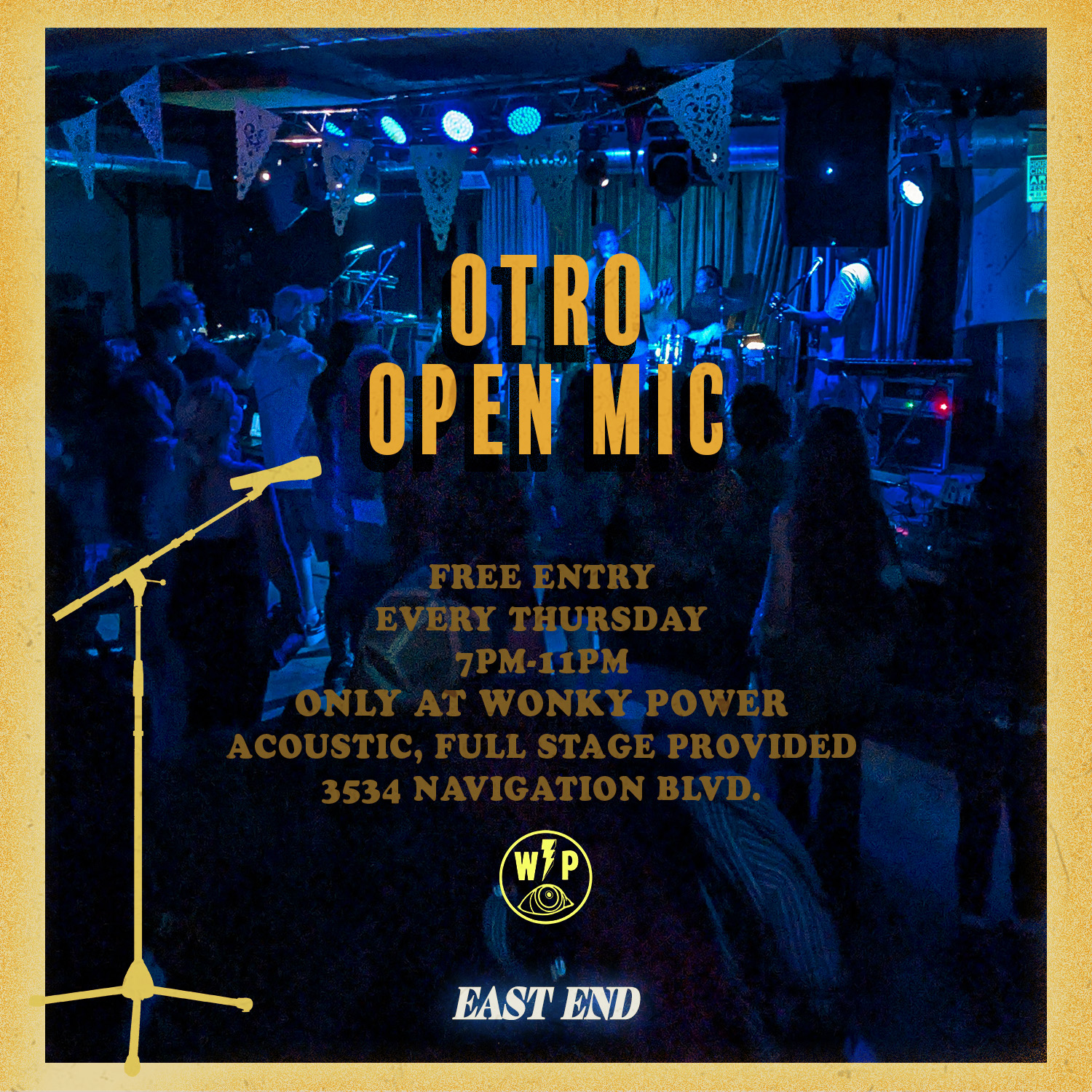Wonky Power curates live concerts throughout Houston and regional areas, produce in-person and online programming, and host artists in their recording studio and venue nestled in the heart of the East End Cultural District and newly expanded studios in Midtown Houston.